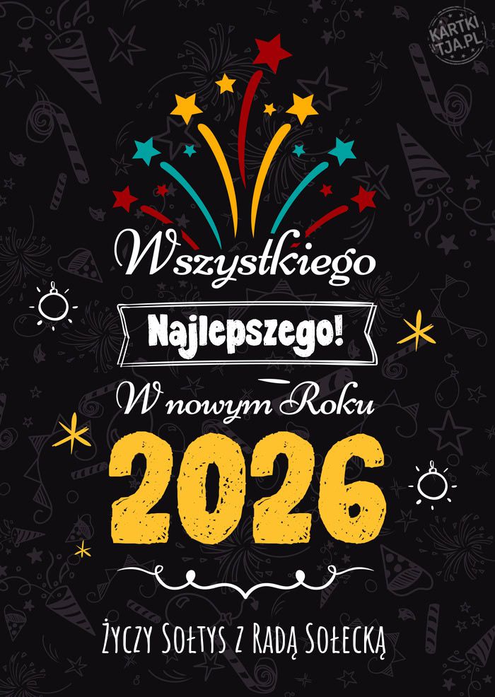 Życzenia NoworoczneAktualnościŻyczenia Noworoczne2025-12-31Wszystkiego najlepszego w nowym 2026 roku, życzy Sołtys z Radą Sołecką.